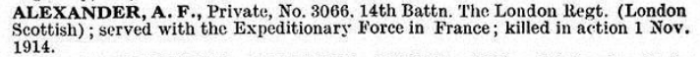 Regiment: 1st/14th Bn., London Regiment (London Scottish)