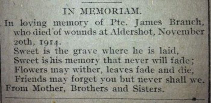 Son of Mary and the late James Branch of North East St Northam Elder Brother to Wilfred also lost April 23rd 1917