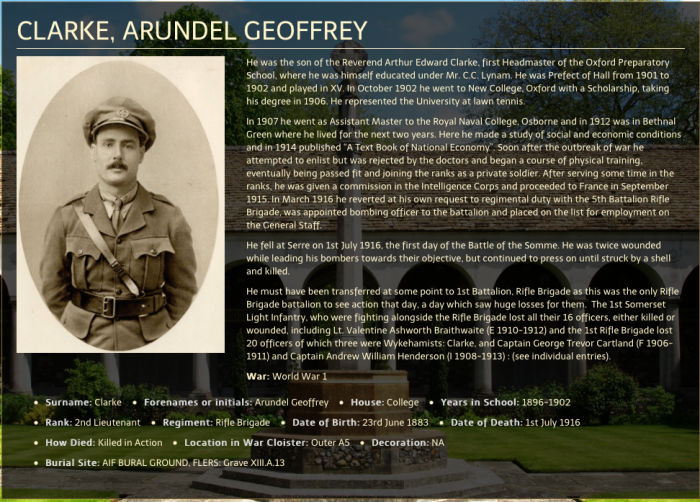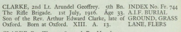 His brother Brinsley Guise Sheridan Clarke lived at Eastborne Lodge Westward Ho!. He might have been responsible for ensuring his brother was honoured on the memorial board in Northam church.