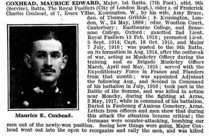 Husband to Dorothea Coxhead.of Tolpedn Sidmouth Devon. Son of Fred C and Amy B Coxhead. Probate granted at Exeter.