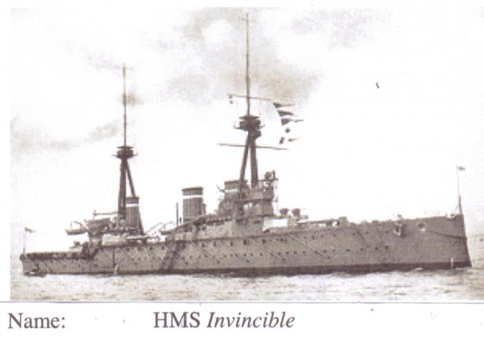 Regiment: H.M.S. 'Invincible' Royal Navy A Battle cruiser lost at the battle of Jutland only 6 survivors from a complement of 1026
