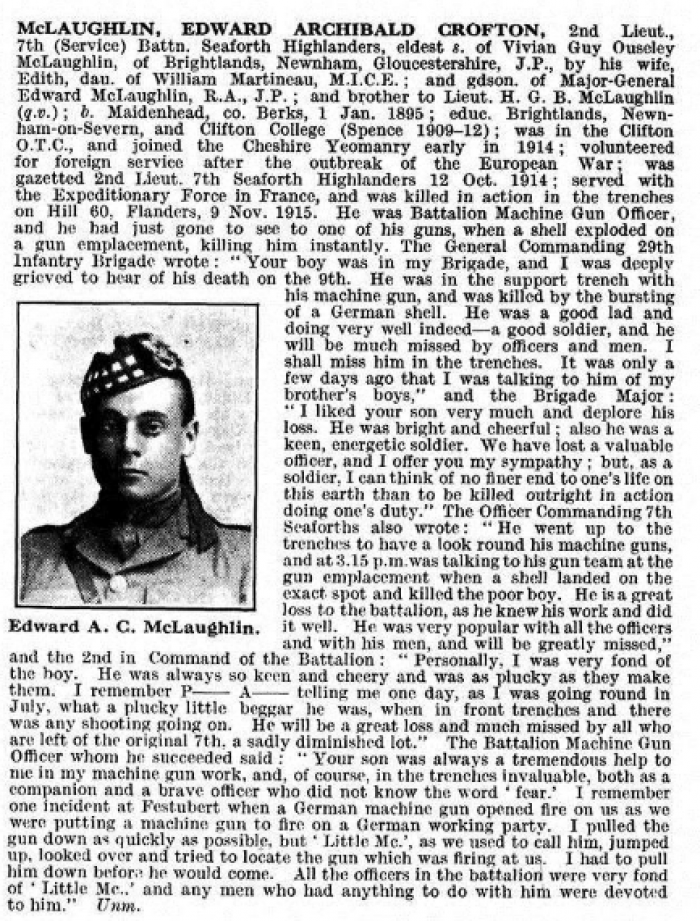 Brother to Hubert Guy Bromilow McLaughlin. also lost 12 Oct 1916.