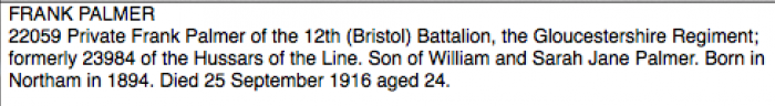 Regiment: 12th Bn., Gloucestershire Regiment.Formerly 23984 of the Hussars
