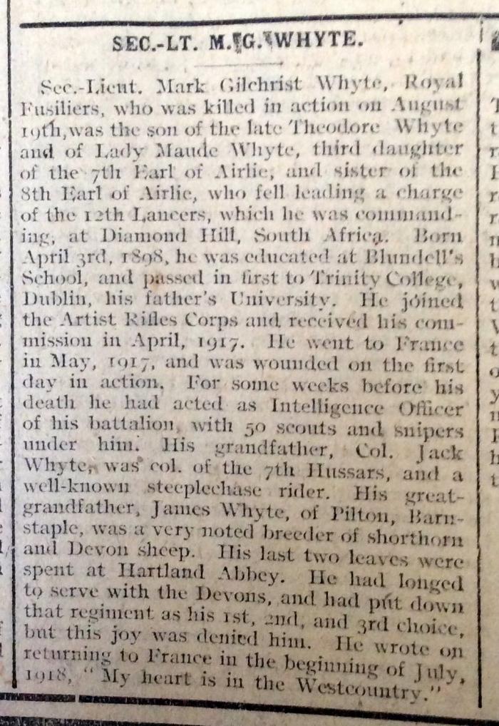 The son of Maude Whyte and the late Theodore Whyte of 28 Bridgeland St Bideford N Devon 1911 Census